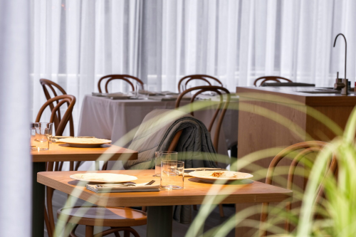 Интерьер ресторана, разработанный известным архитектором Алексеем Пенюком, воплощает скандинавский минимализм, наполненный теплом и светом. Пастельные оттенки, натуральное светлое дерево, текстурированные стены и мягкие кожаные диваны создают обволакивающее пространство, где каждая деталь продумана до мелочей. Уютные столики у окна дарят ощущение простора, словно предназначены для влюбленных пар, которые хотят насладиться друг другом в непринужденной обстановке.